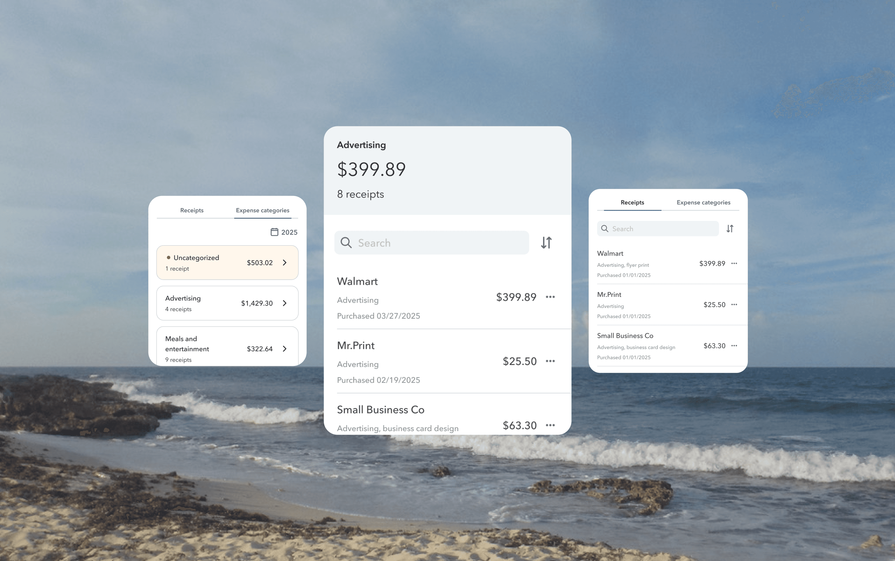 Through many discussions and comparing to other apps, we landed on tabs to show both receipts and expense categories. We made receipts the default for ease of editing and took our prototype to customers.